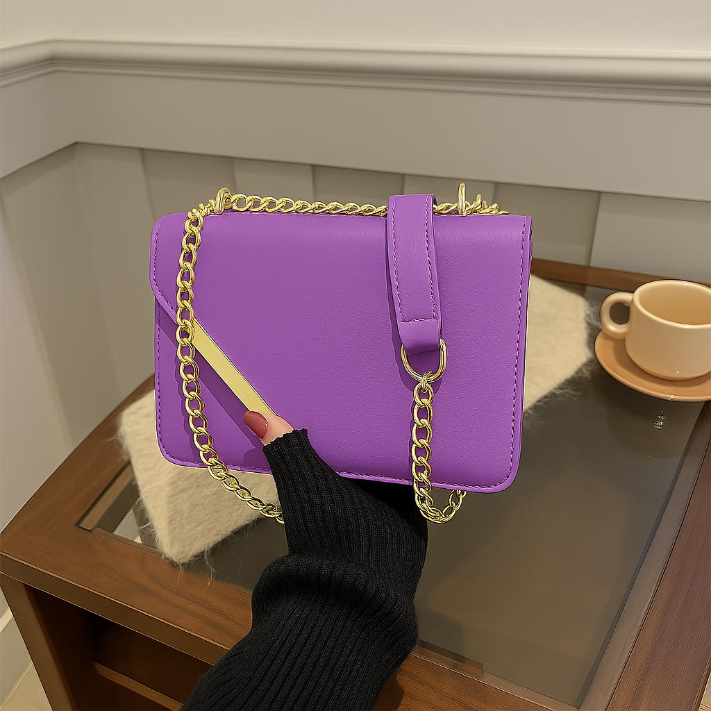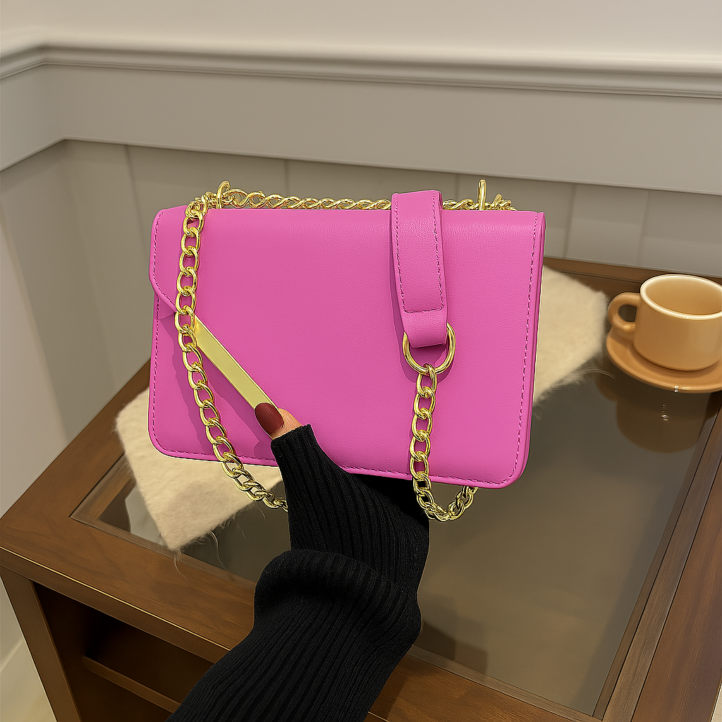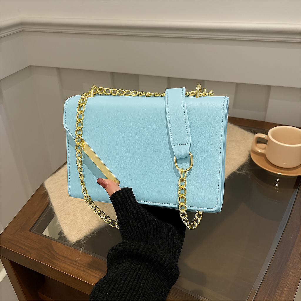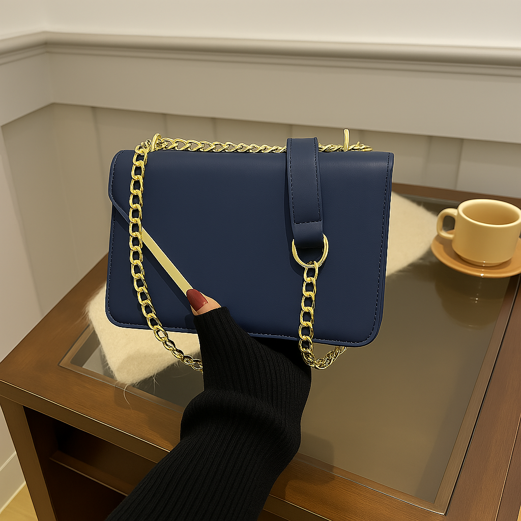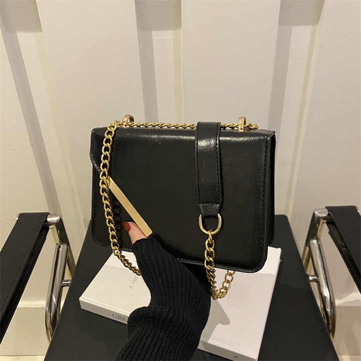 Elegant Black Leather Shoulder Bag with Gold Chain